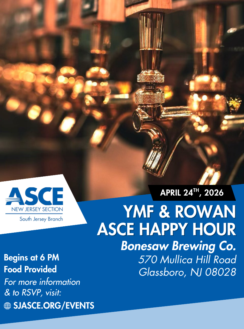 Join SJASCE YMF and Rowan University ASCE for a joint happy hour at Bonesaw Brewing Co. on Friday, April 24th starting at 6:00 PM. During the happy hour, SJASCE will be presenting Rowan ASCE’s graduating officers with ASCE Stoles. Food will be provided by SJASCE. Attendance is free, guests are welcome, and you do not need to be a member of SJASCE to attend! Please RSVP using the link below so we have an accurate head count for food.